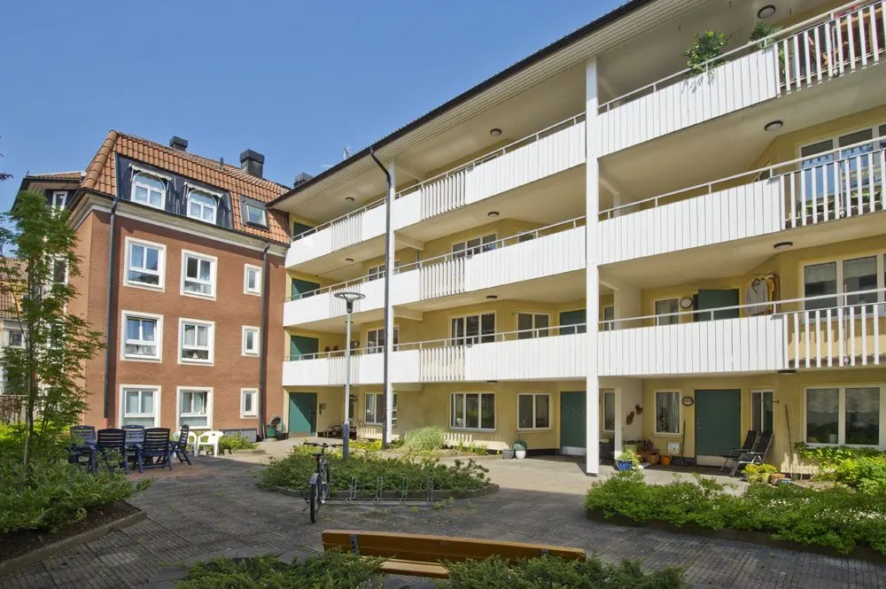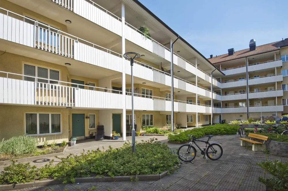 De flesta av lägenheterna har entréer via loftgångar som i många fall möjliggör en liten uteplats. På fastighetens hörn, i entréplan finns en restauranglokal och intill den en butikslokal.